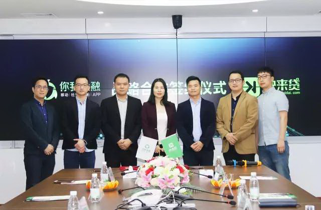 2017年3月3日上午,你我金融和快来贷,这两家价值观契合的互联网金融公司在深圳你我金融总部正式签署协议,达成战略合作。你我金融CEO廖红梅、产品中心总监黄海滨、运营中心总监许孝超、东莞分部城市经理戚杰等出席签约仪式;快来贷CEO席勇辉、COO刘永及产品经理贾玉石莅临签约仪式现场。